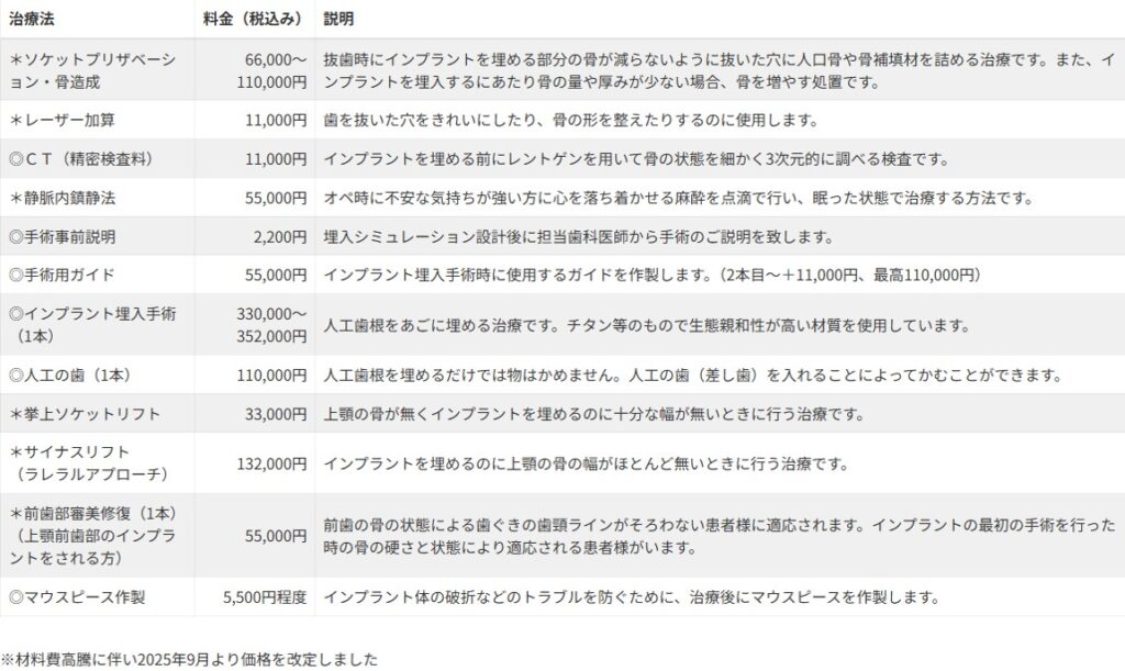 近年の材料費の高騰に伴い、インプラント治療は9月から、その他の自費の詰め物・被せ物・義歯は10月から 価格を改定させていただきました。