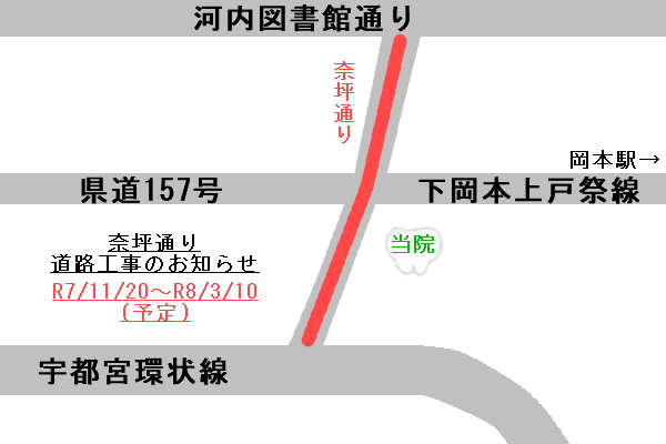 明日、令和7年11月20日より令和8年3月10日までの長期間に渡り、医院前の道路、奈坪通りにて道路工事が予定されています👷